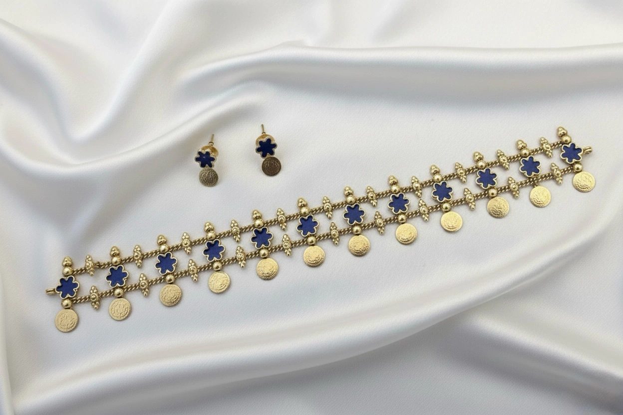 Blue choker set with earrings