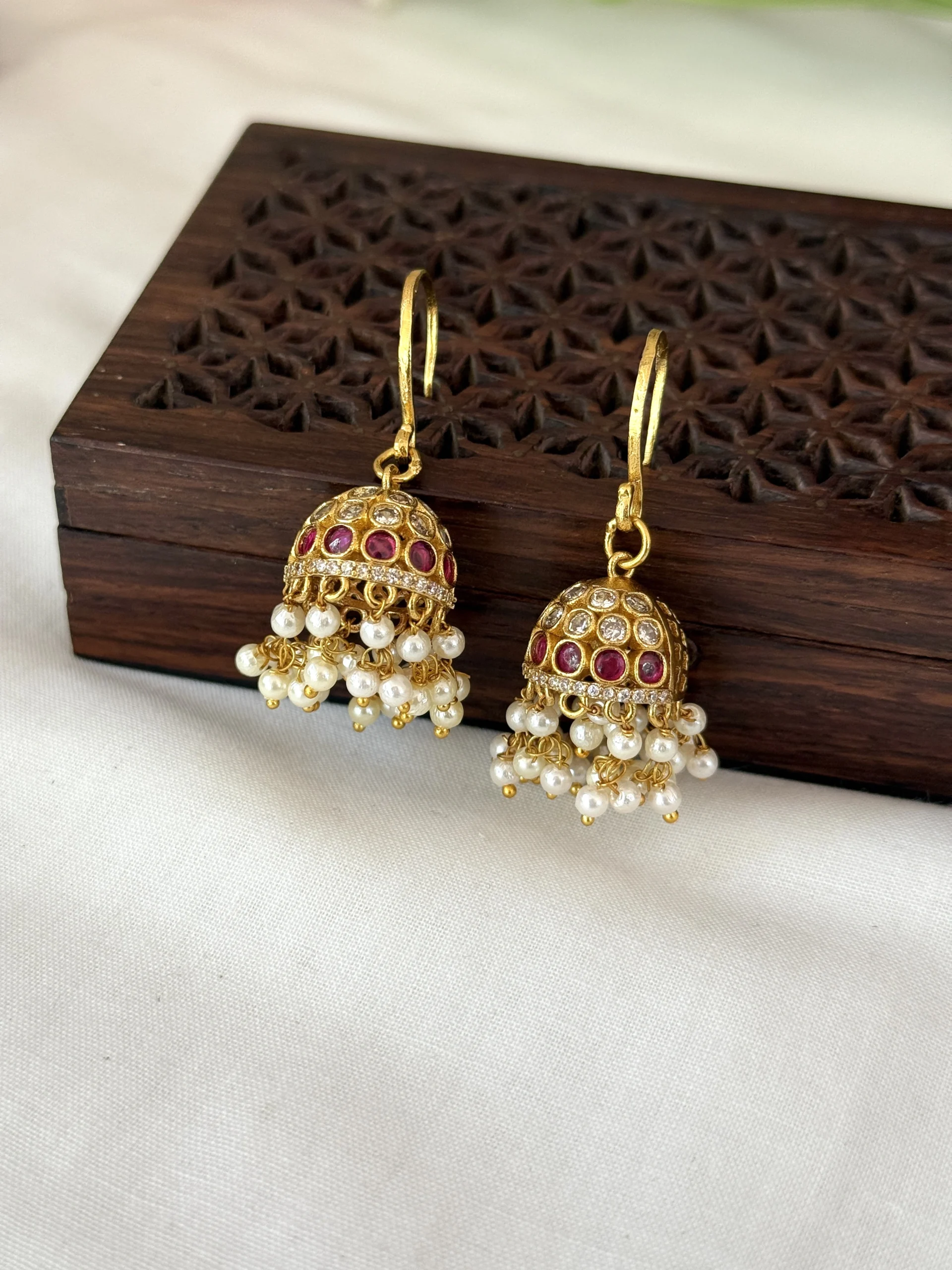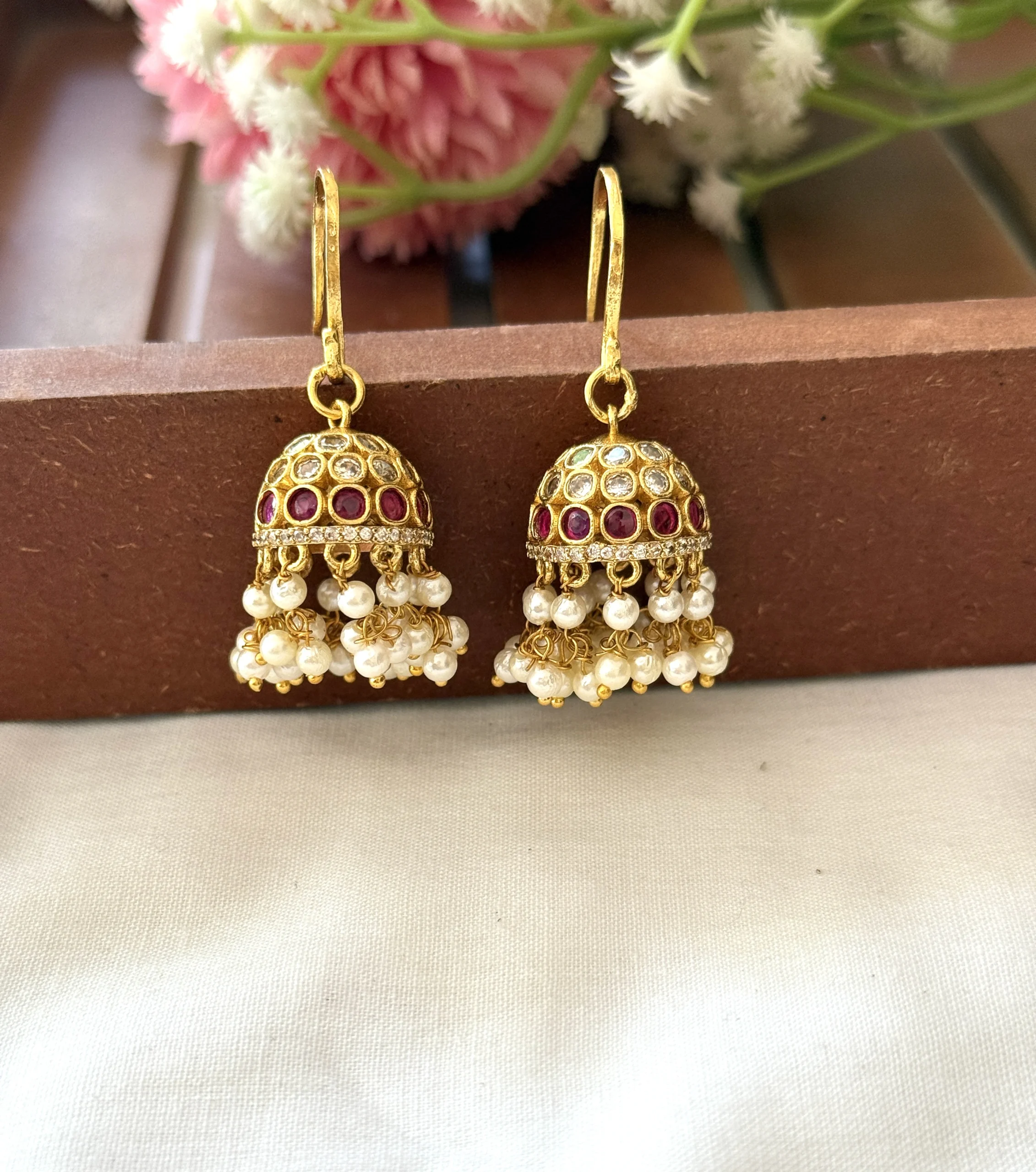 Pearl drop hanging jhumkas