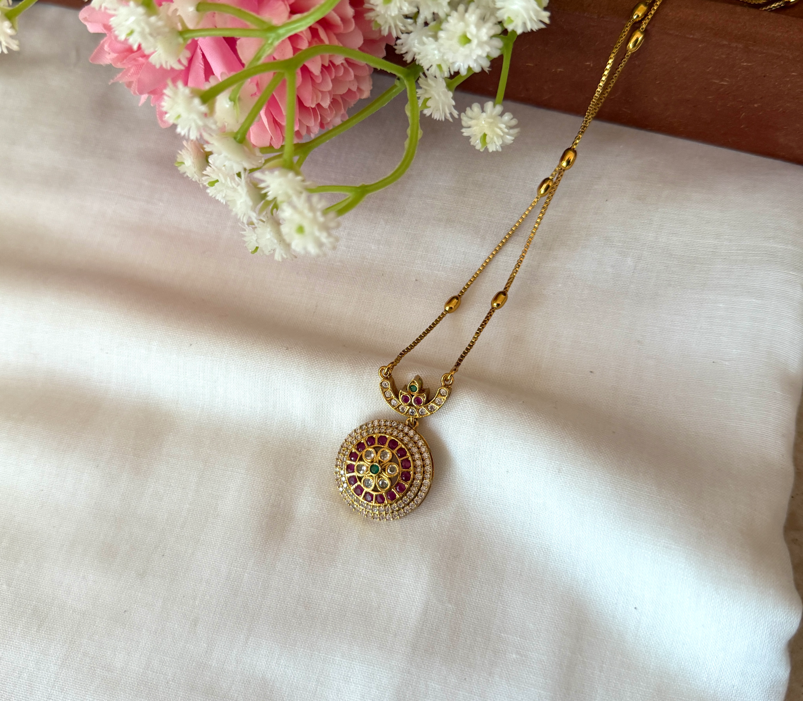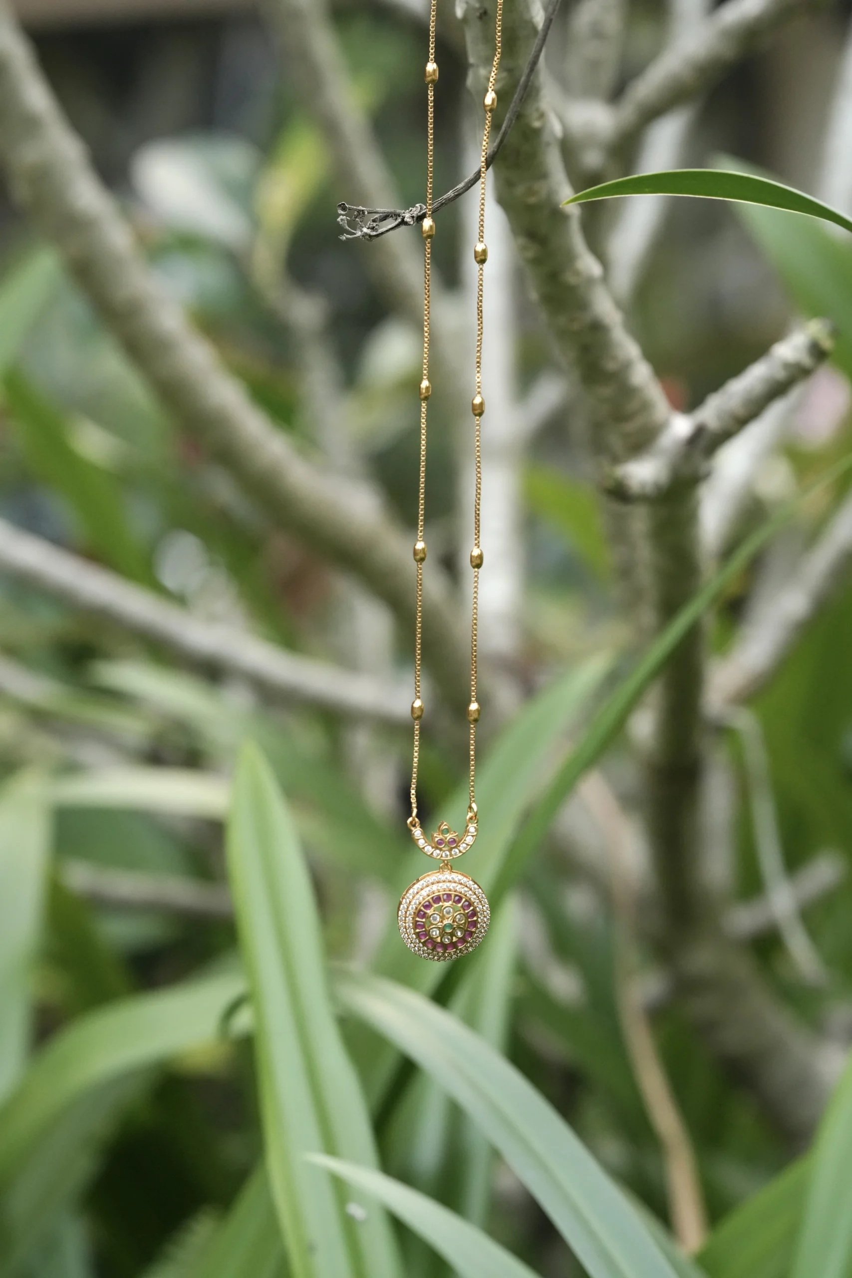 matte finish medium length long chain with round pendant